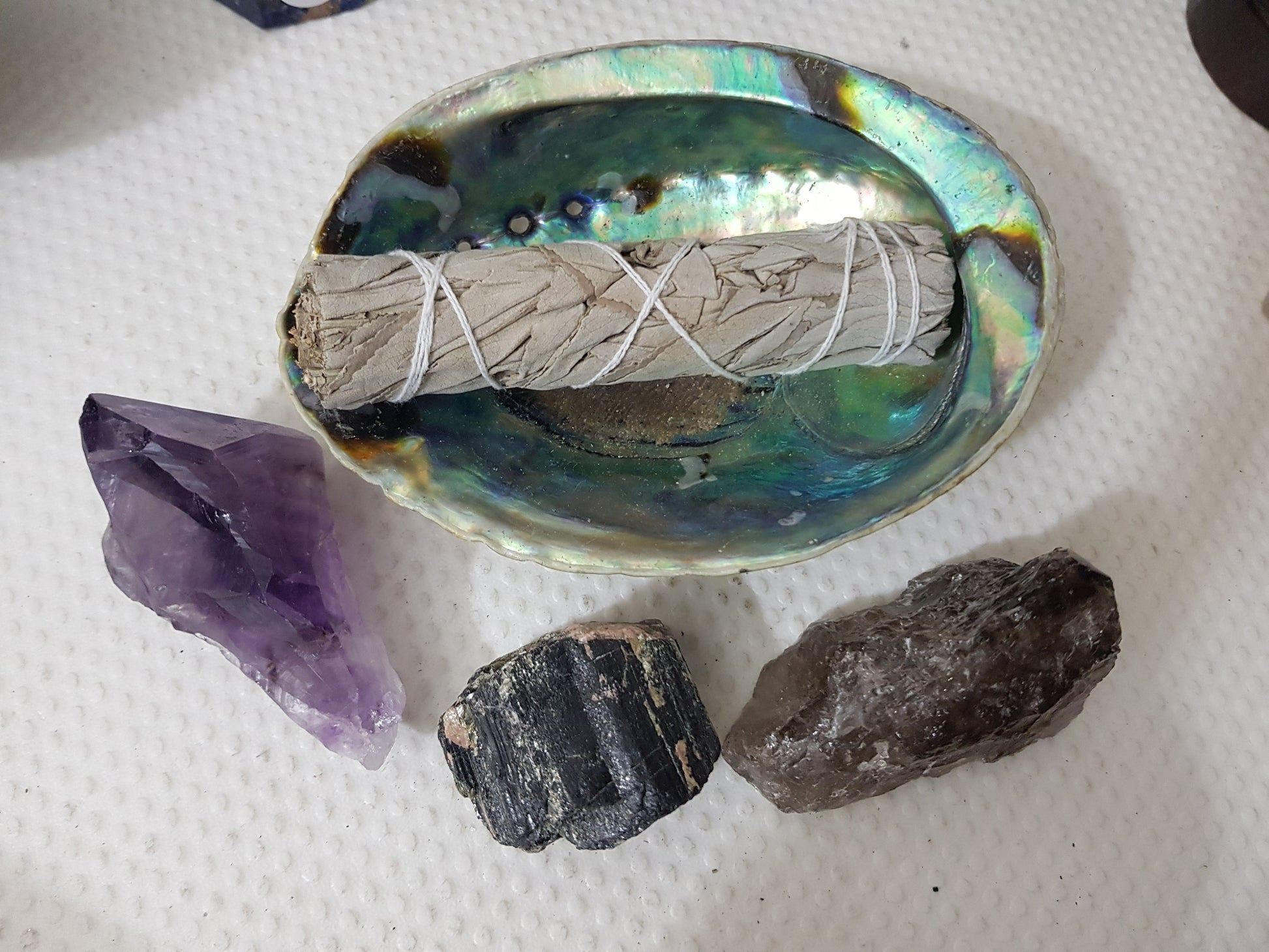 - Unpolished Abalone Shell – A natural bowl for catching ashes, symbolizing the water element and enhancing the flow of calming energy.