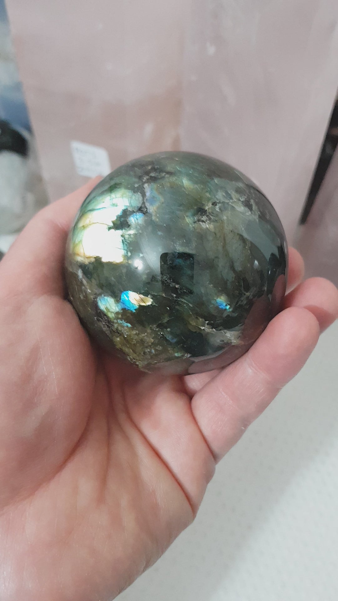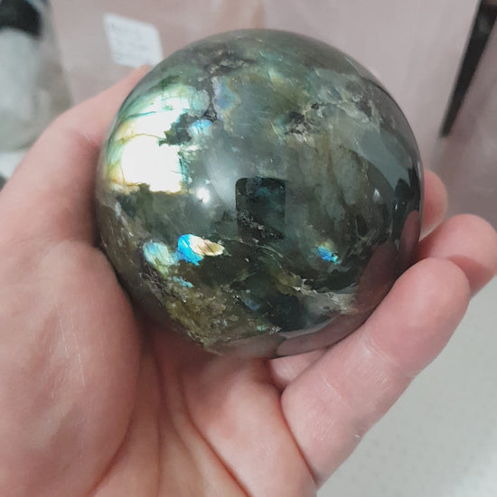 This gorgeous Labradorite sphere has some amazing flashes which can be viewed in the video/photo’s.