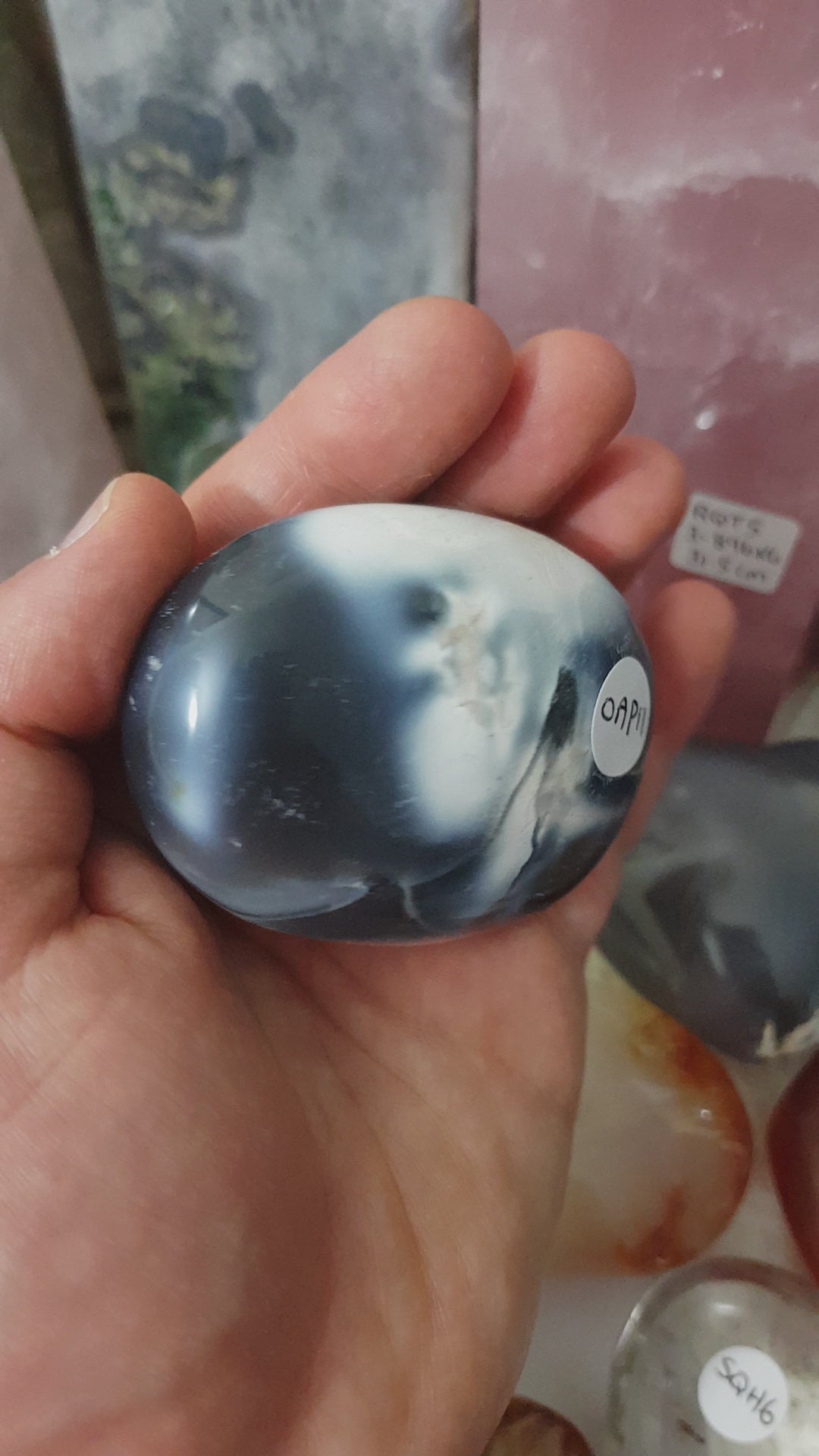 Orca Agate Crystal Palmstone – OAP11